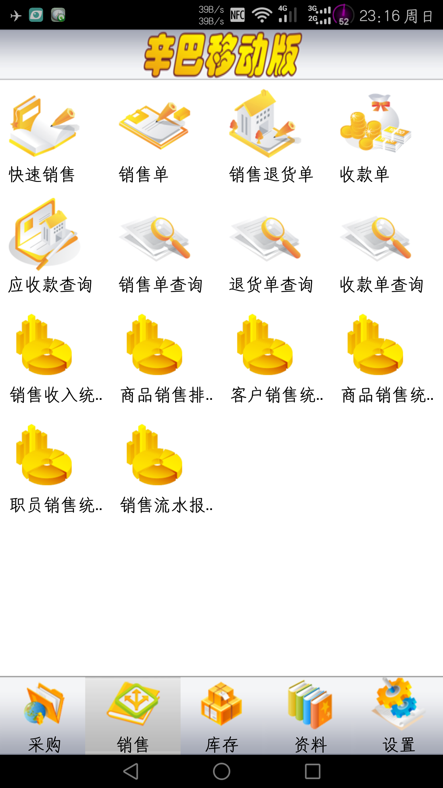 辛巴商贸通手机端可安装在安卓手机上,临时数据保存在手机客户端,主数据保存在PC服务器端,重要数据永不丢失。 - 支持WIFI、3G、4G等移动互联网